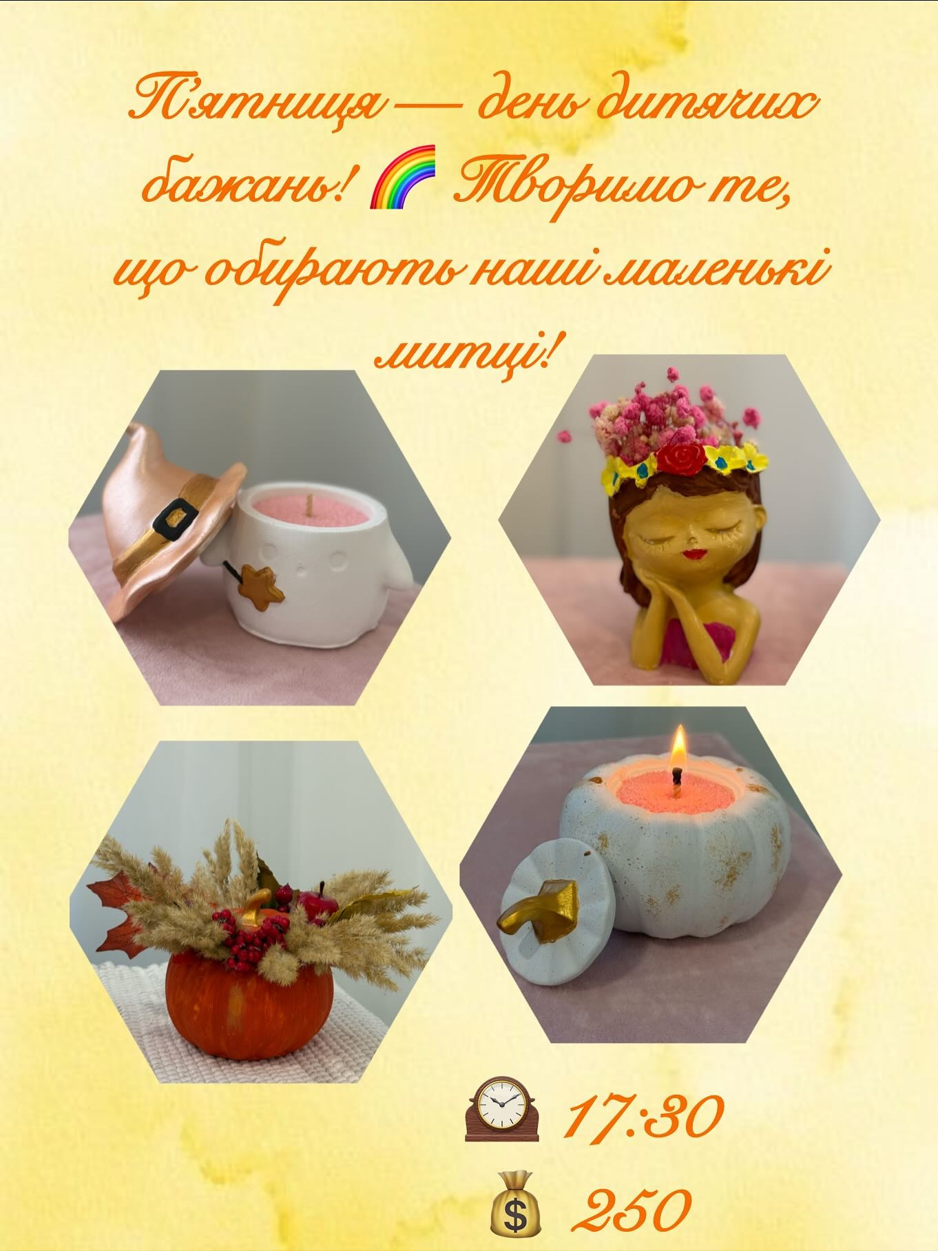 П'ятниця — день дитячих бажань! Запрошуємо дітей на чарівний майстер-клас, який вони оберуть самі.