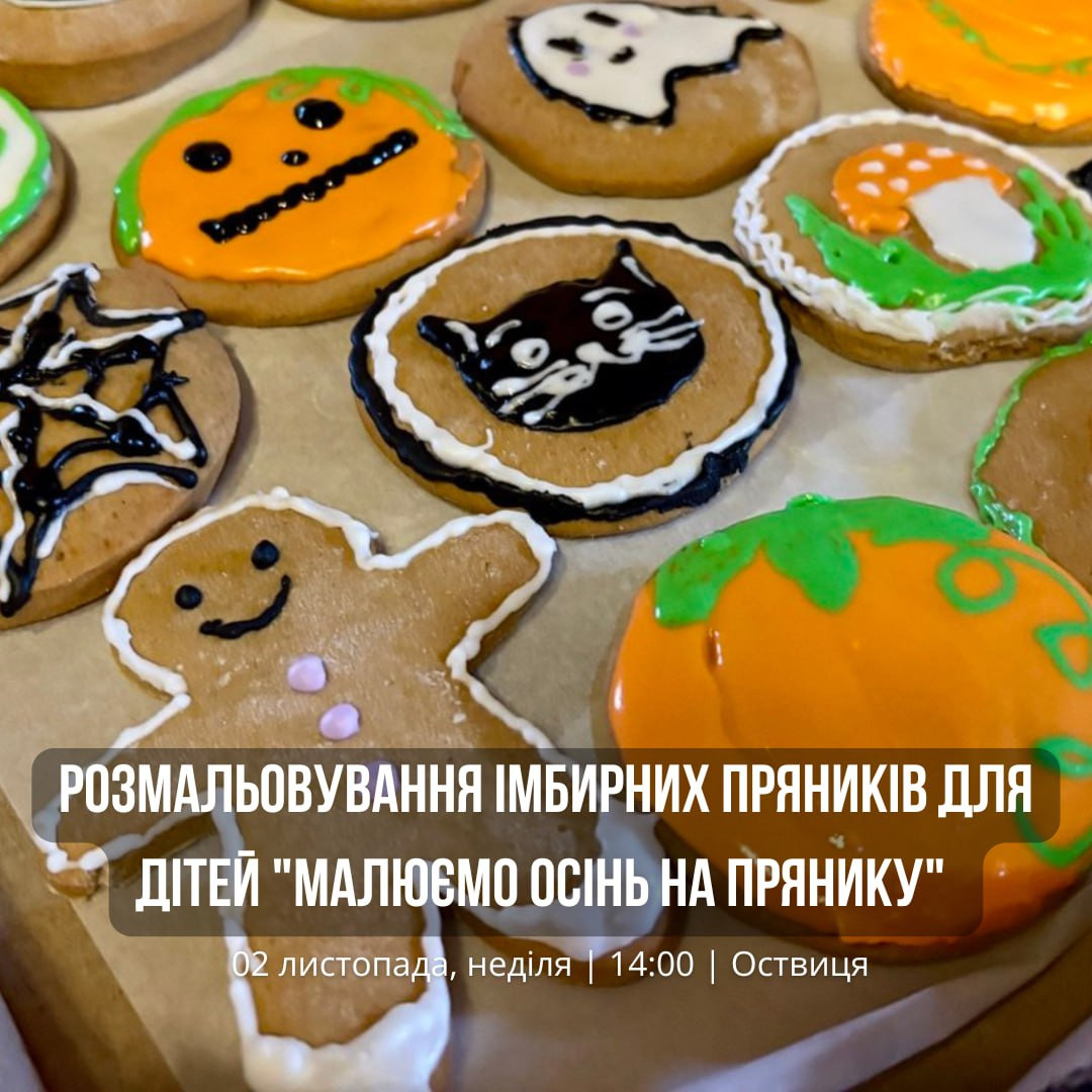 Запрошуємо дітей від 6 років на смачний майстер-клас з розпису імбирних пряників! Тема заняття - яскраві барви осені.