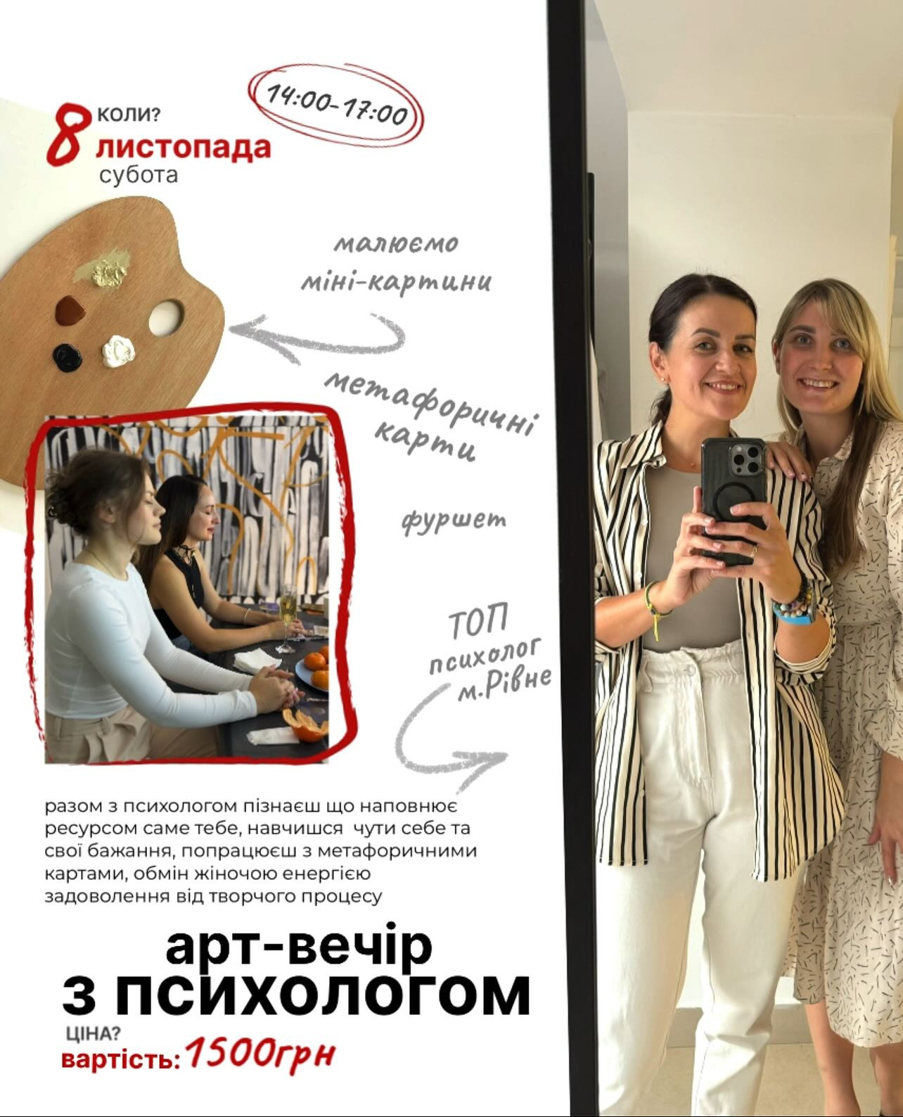 Запрошуємо на арт-вечір з психологом — простір гармонії, натхнення та щирості.