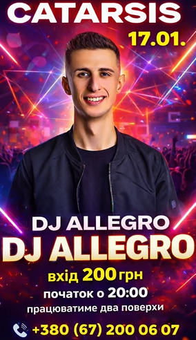 Запрошуємо на вечір, де DJ Allegro запалить танцпол і створить справжню хвилю енергії та драйву.