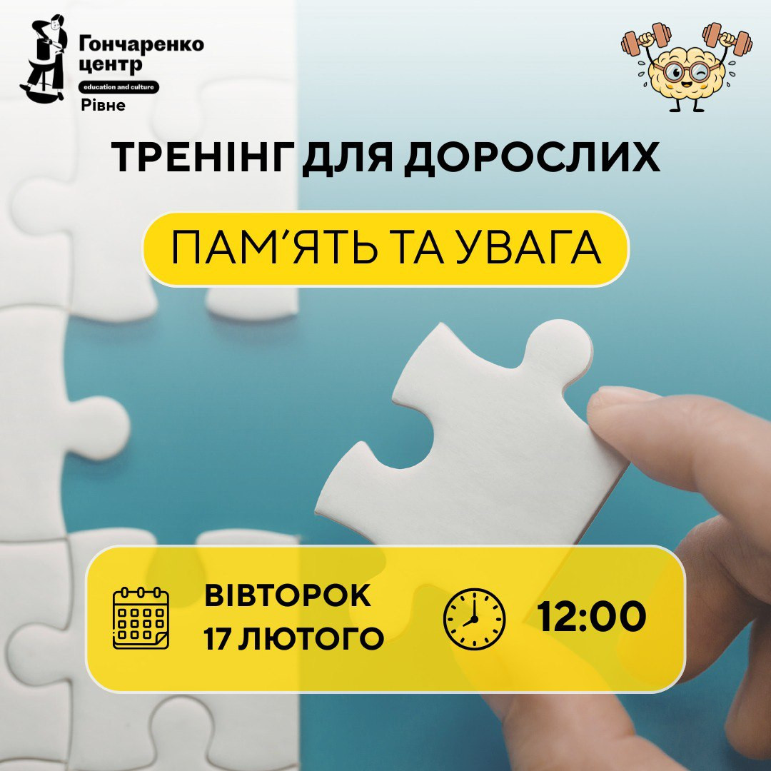 Тренінг для дорослих "Пам'ять та увага" у місті Рівне