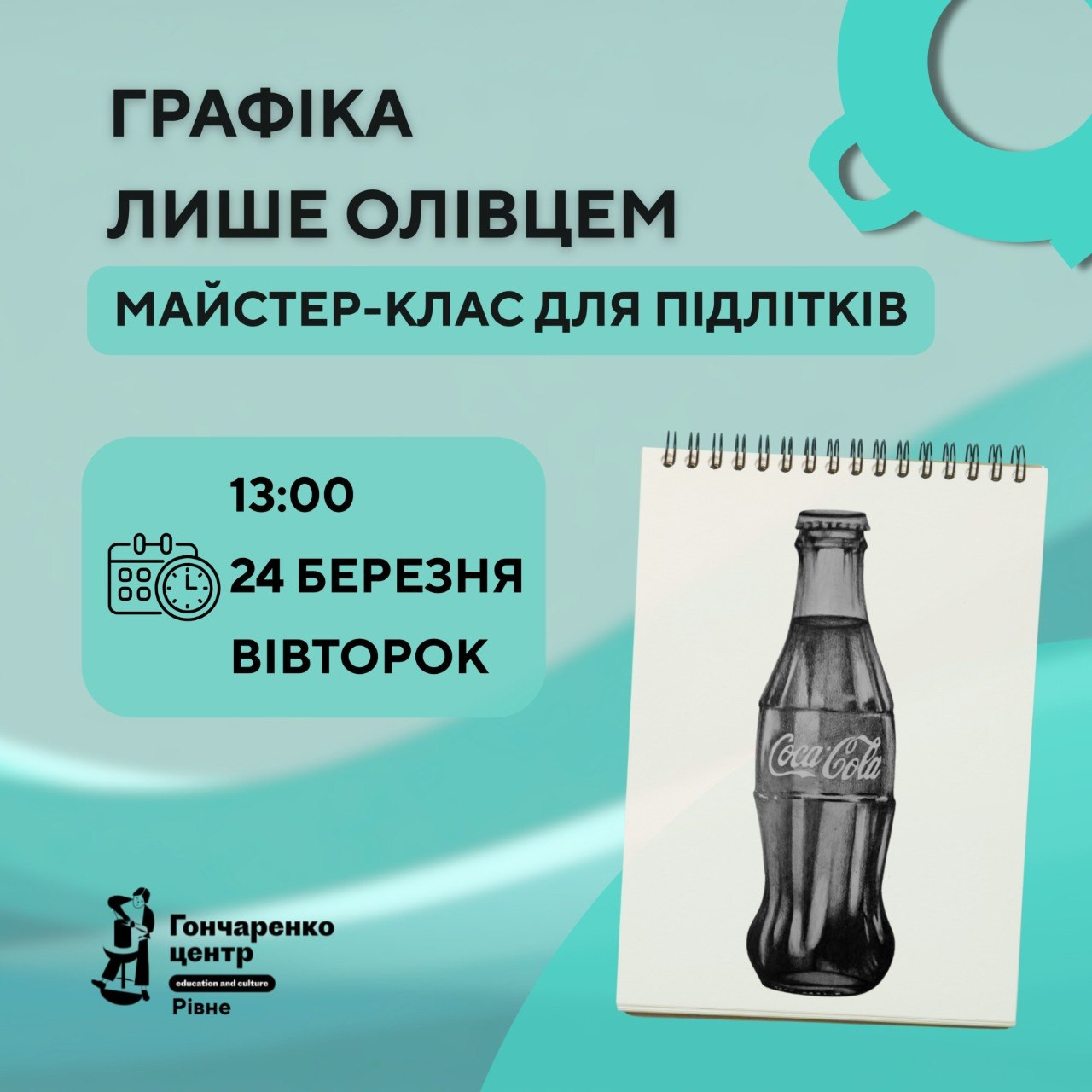 Запрошуємо підлітків на майстер-клас із графіки олівцем у Гончаренко центрі Рівне.