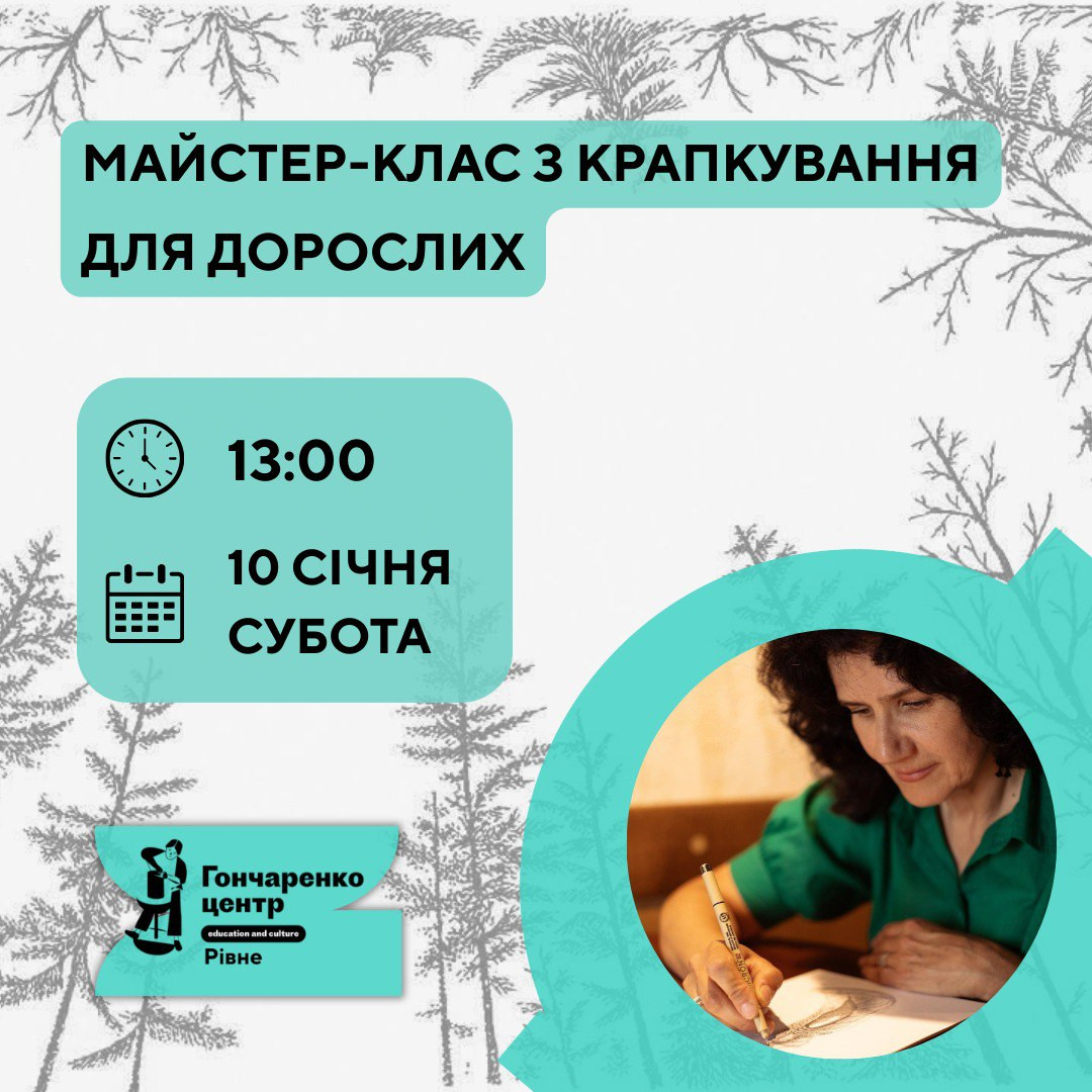 Вперше в Гончаренко центрі Рівне — майстер-клас із крапкування для дорослих.