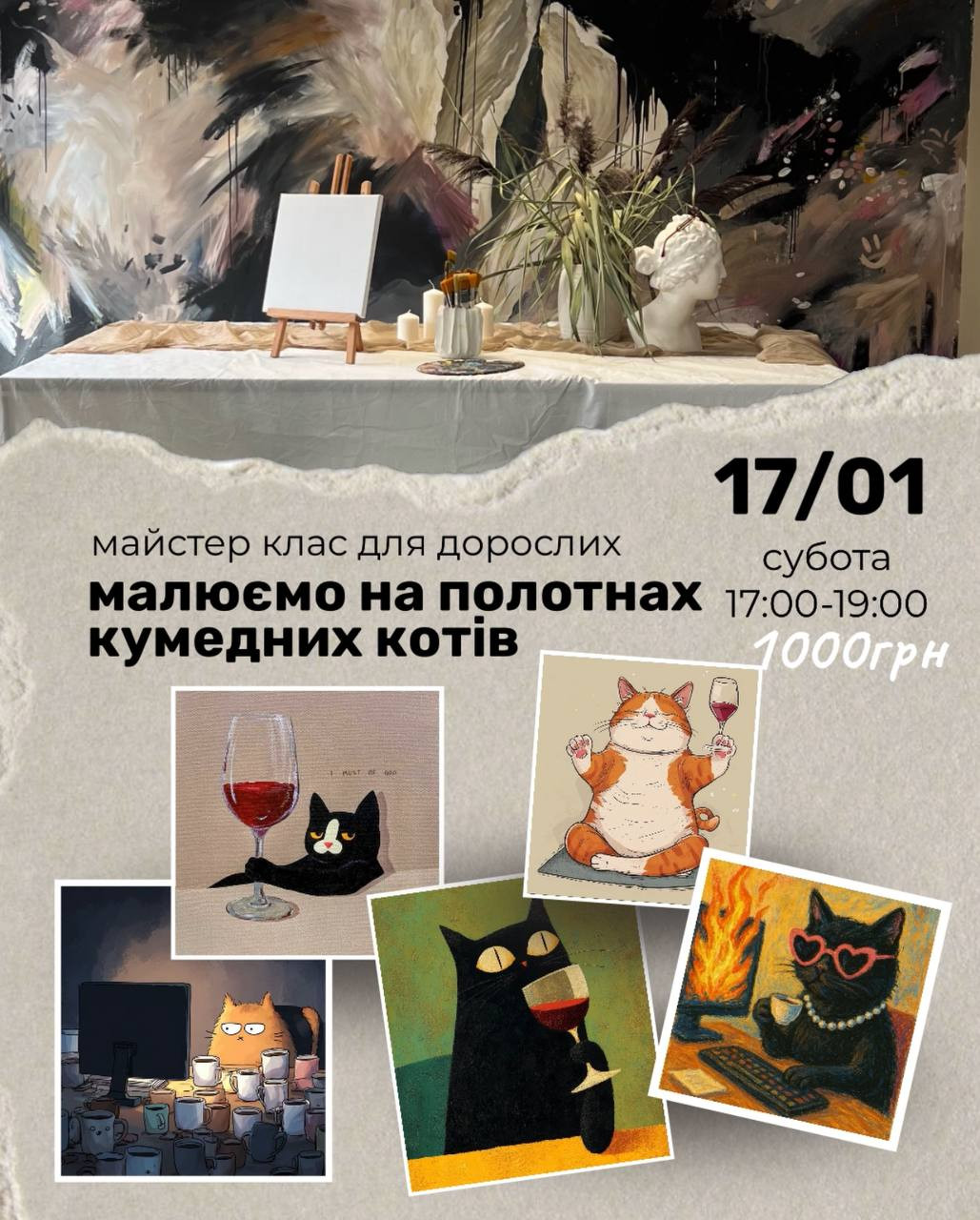 Майстер-клас для дорослих "Малюємо на полотнах кумедних котів" у місті Рівне
