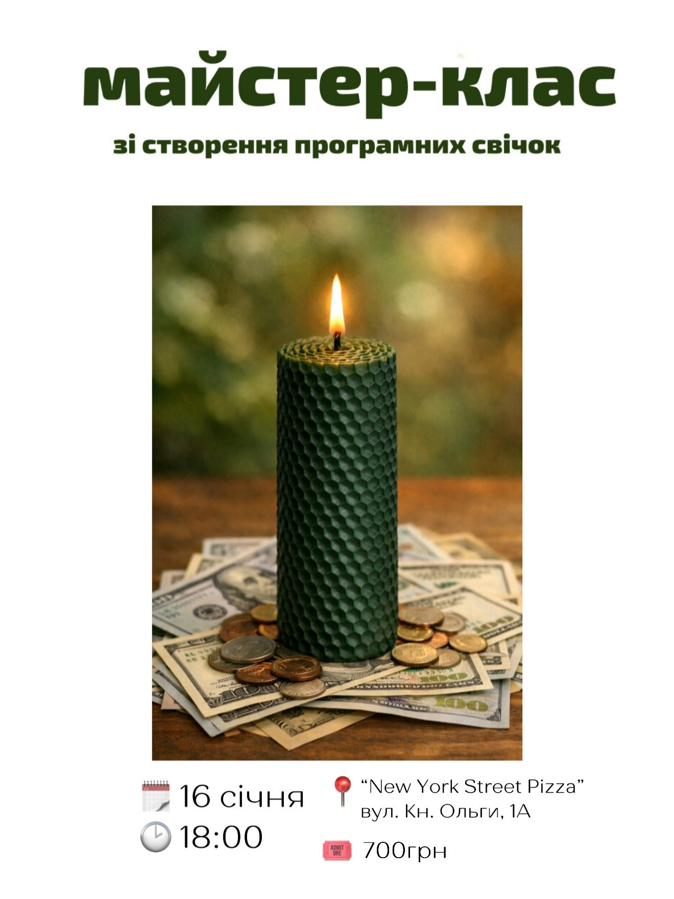 Запрошую вас на особливе дійство, де ми поєднаємо прадавню силу вогню, природну енергію воску та найцінніші ефірні олії Vivasan, щоб створити вашу особисту програмну свічку на фінансовий прорив.