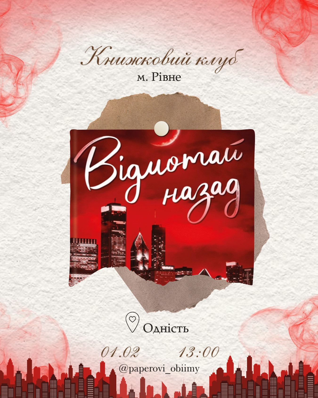 Запрошуємо на книжкову зустріч у Рівному, де будемо говорити про роман "Відмотай назад" Ліз Томфорд — емоційну, напружену й дуже чуттєву історію про другий шанс, вибір і кохання, яке не так просто стерти з пам’яті.