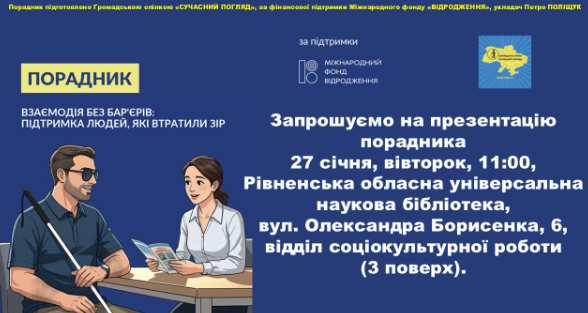 Запрошуємо на презентацію порадника "Взаємодія без бар'єрів: підтримка людей, які втратили зір".