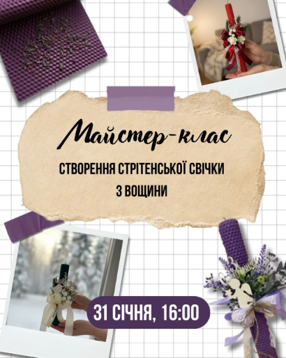 Майстер-клас зі створення вощаної Стрітенської свічки. Запрошуємо вас у простір тепла, світла й тиші.