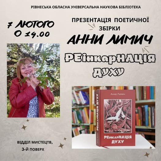 Запрошуємо на чудову літературну подію – презентацію нової поетичної збірки Анни Лимич "РЕінкарНація Духу".