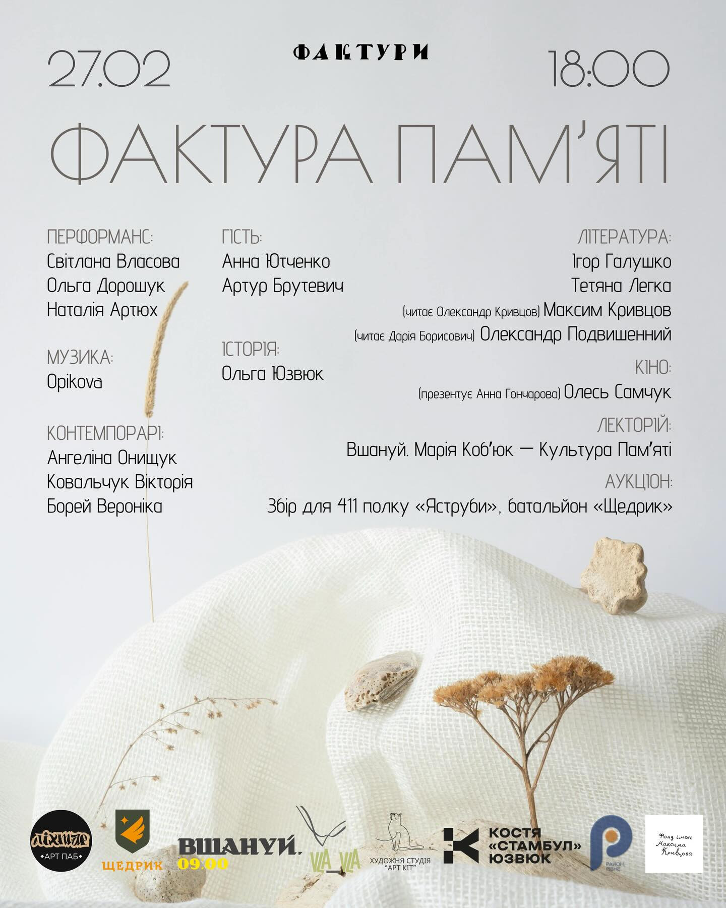 Запрошуємо на відкриття нового сезону "Фактур", літературно-мистецьку подію з елементами перформансу, де ми будемо говорити про незламність та спротив через переосмислення й переродження.