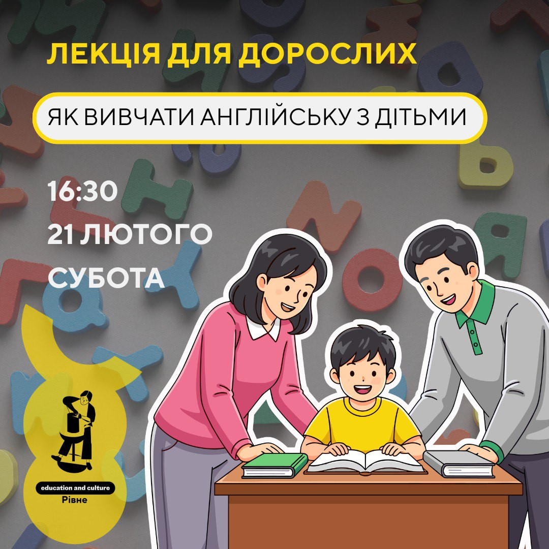 Запрошуємо дорослих на лекцію "Як вивчати англійську з дітьми" — актуальну зустріч для батьків, які хочуть підтримати своїх дітей у навчанні.