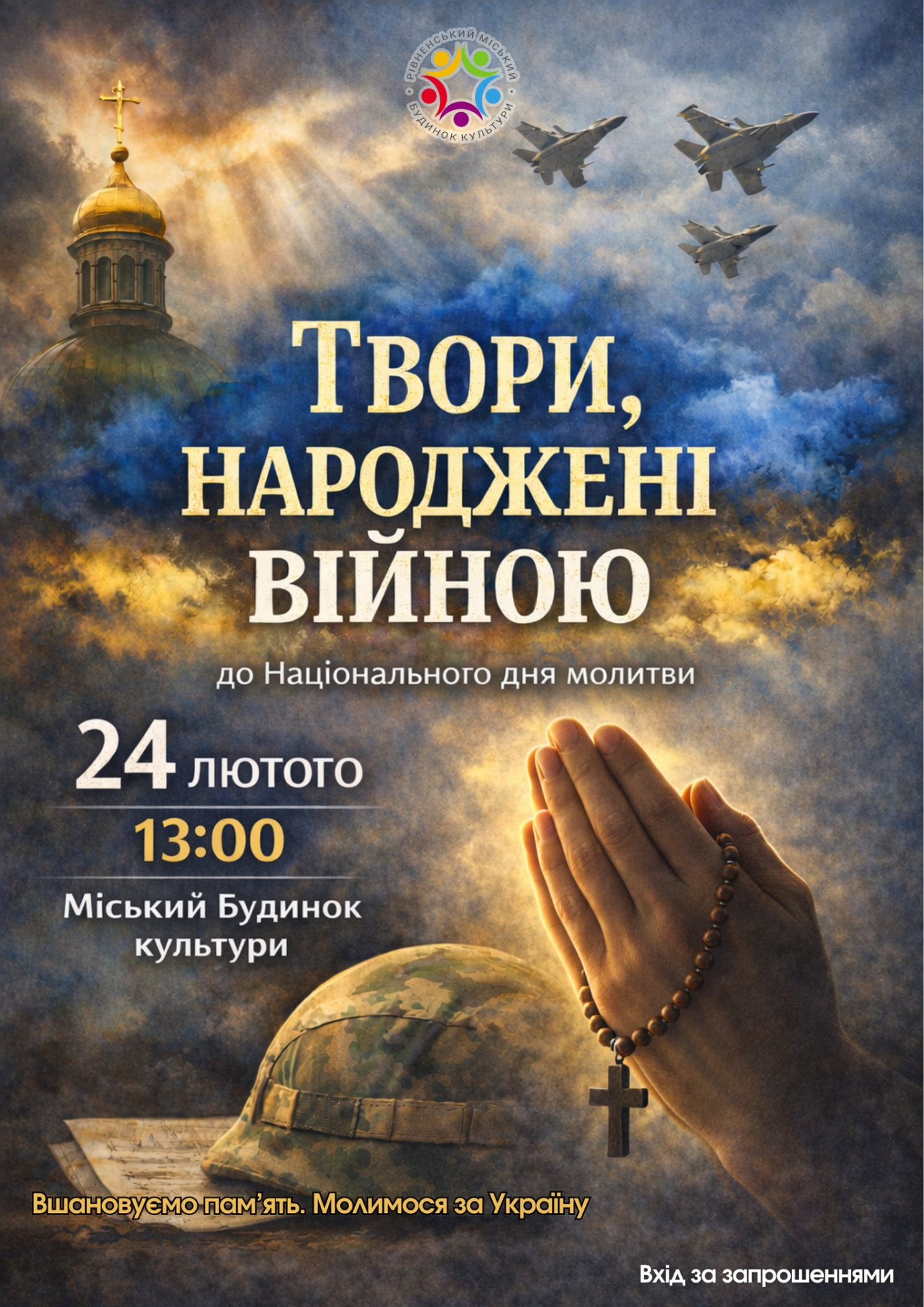 Захід "Твори, народжені війною", приурочений до встановленого Верховною Радою України пам’ятного дня. Тут звучатимуть пісні та поезія, слова яких торкаються кожного українця – ті, які болять і ті, які вселяють віру.