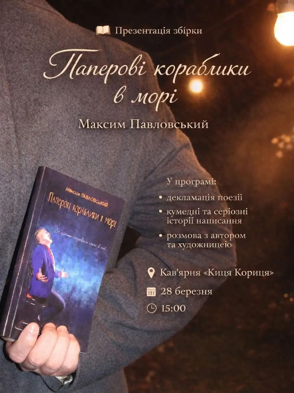 Запрошуємо вас на презентацію поетичної збірки "Паперові кораблики в морі" Максима Павловського @illusionistmaks.