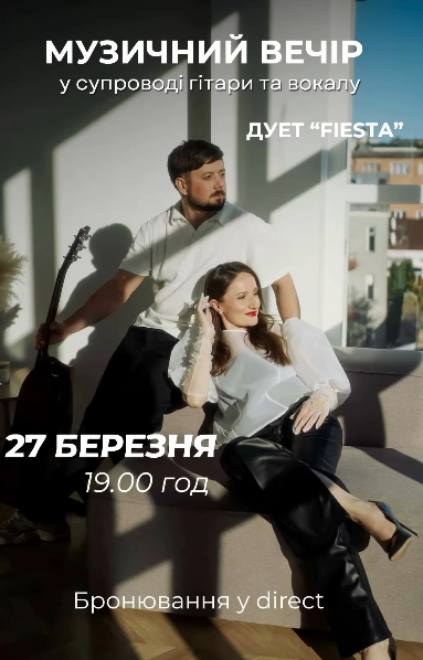 Запрошуємо вас на чарівний вечір у супроводі гітари та вокалу з фантастичним дуетом "Fiesta".