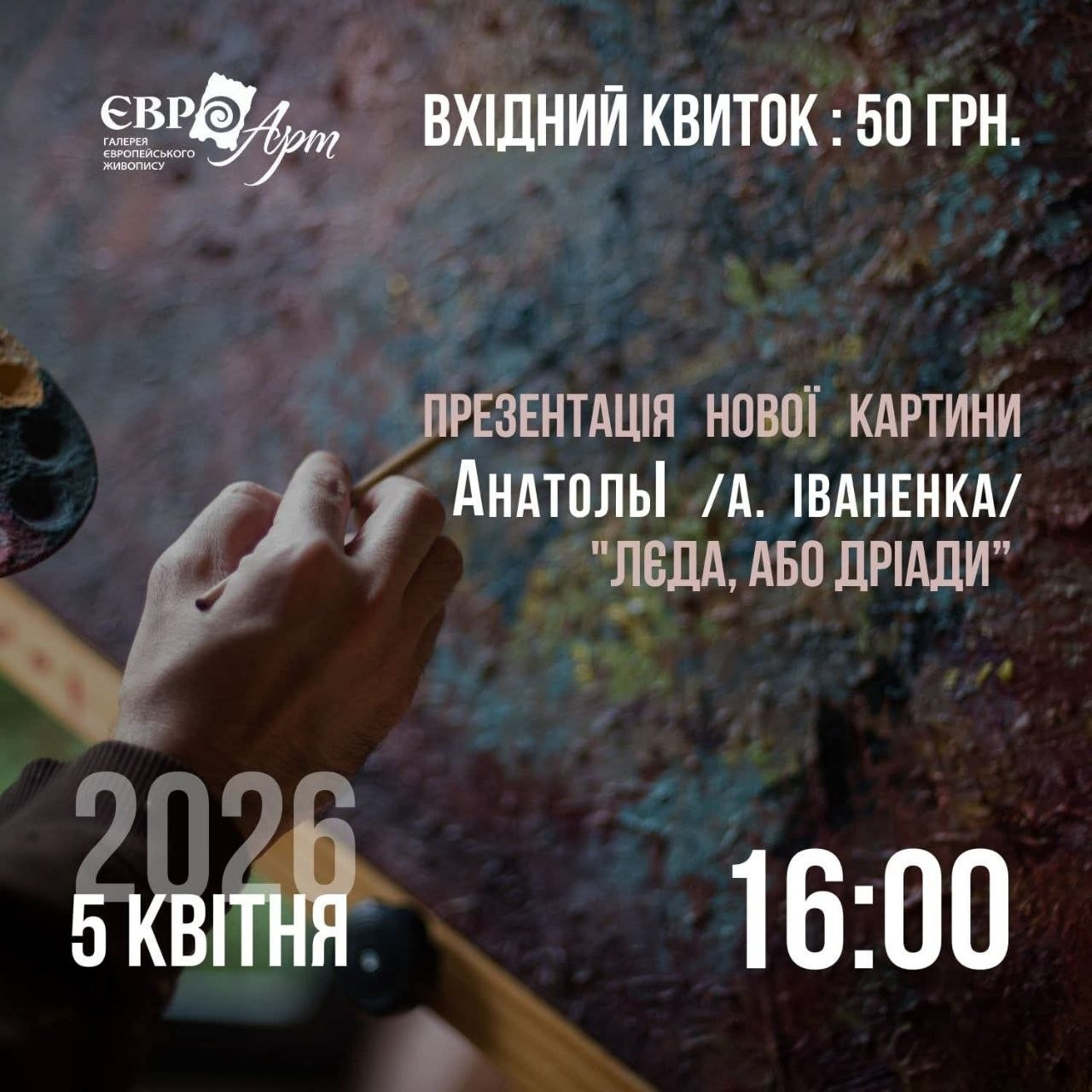 Приходьте на розмову про мистецтво, стиль і натхнення, і нову картину ви побачите першими!