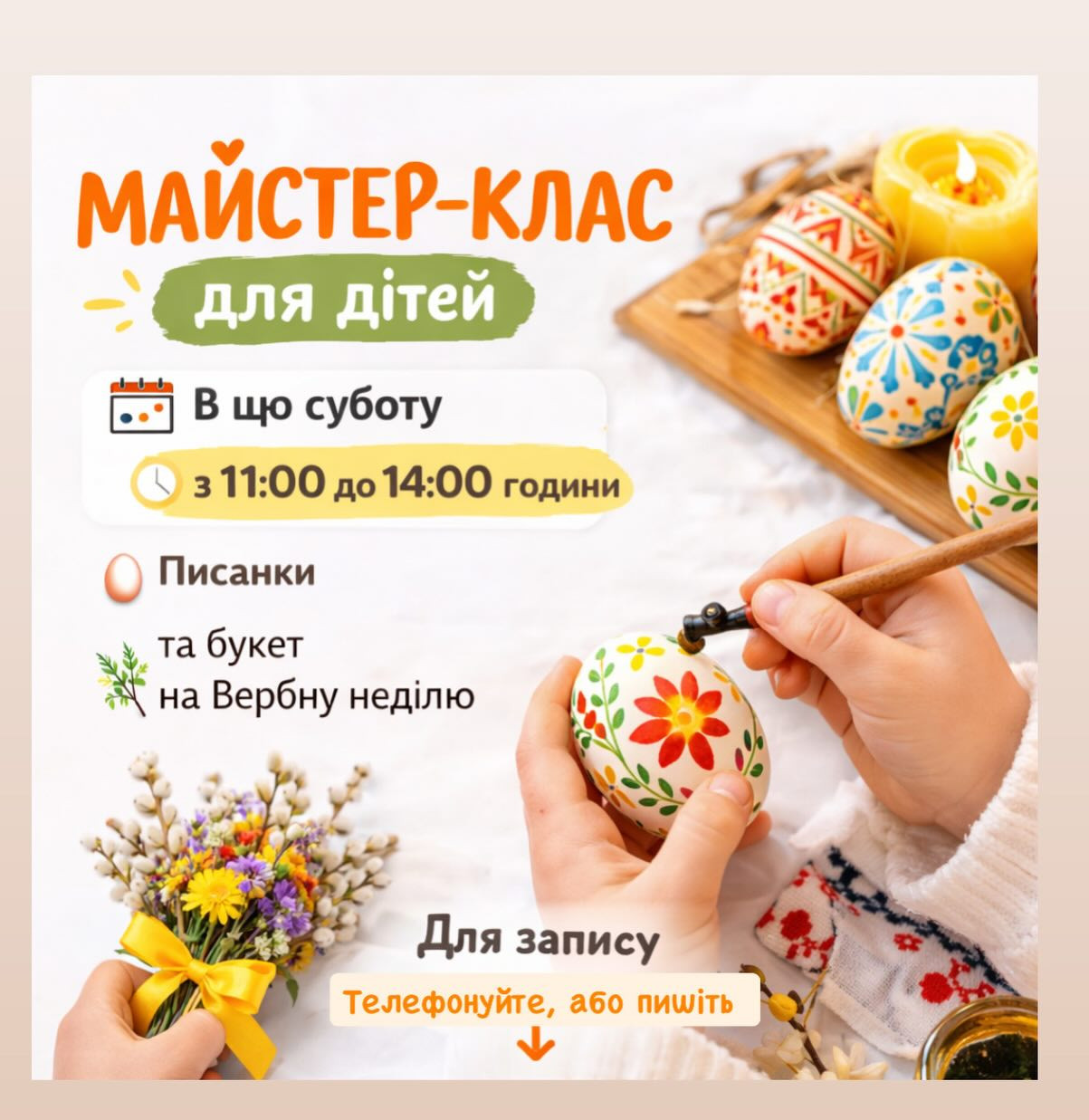 Майстер-клас для дітей "Писанки та букет на Вербну неділю" у місті Рівне
