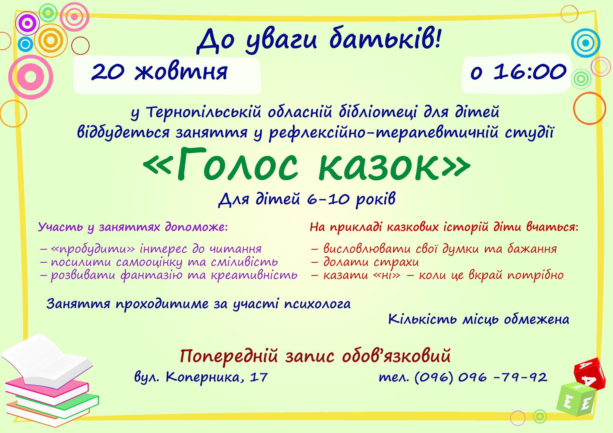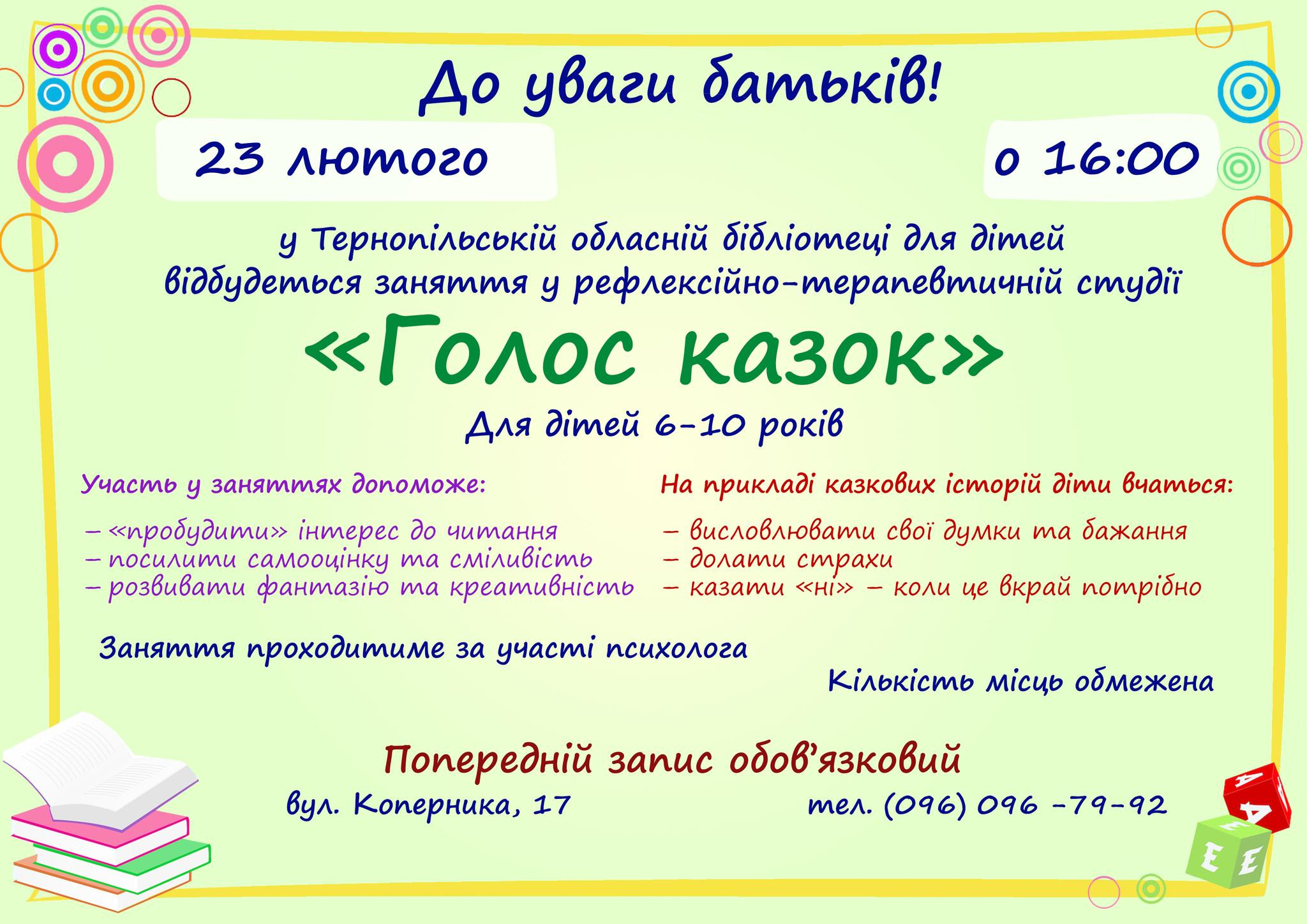Запрошуємо на заняття у рефлексійно-терапевтичній студії "Голос казок"!