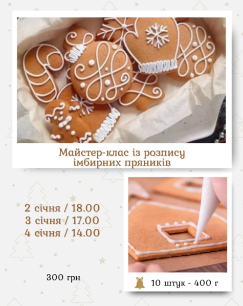 Майстер-клас із розфарбовування імбирних пряників — це тепла й смачна творча зустріч, де кожен зможе відчути справжню святкову атмосферу.