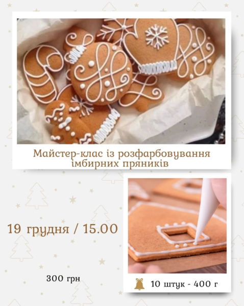 Майстер-клас із розфарбовування імбирних пряників — це тепла й смачна творча зустріч, де кожен зможе відчути справжню святкову атмосферу.
