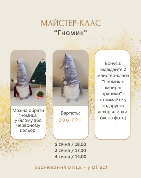 Майстер-клас "Гномик" — чарівна творча зустріч, що наповнить простір святковим настроєм.