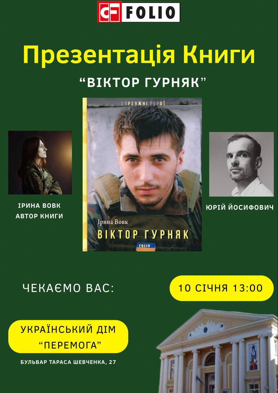 Друзі, запрошуємо Вас прийти на презентацію книги "Віктор Гурняк" з серії "Справжні Герої", яку написала журналістка, письменниця, волонтерка пані Ірина Вовк.