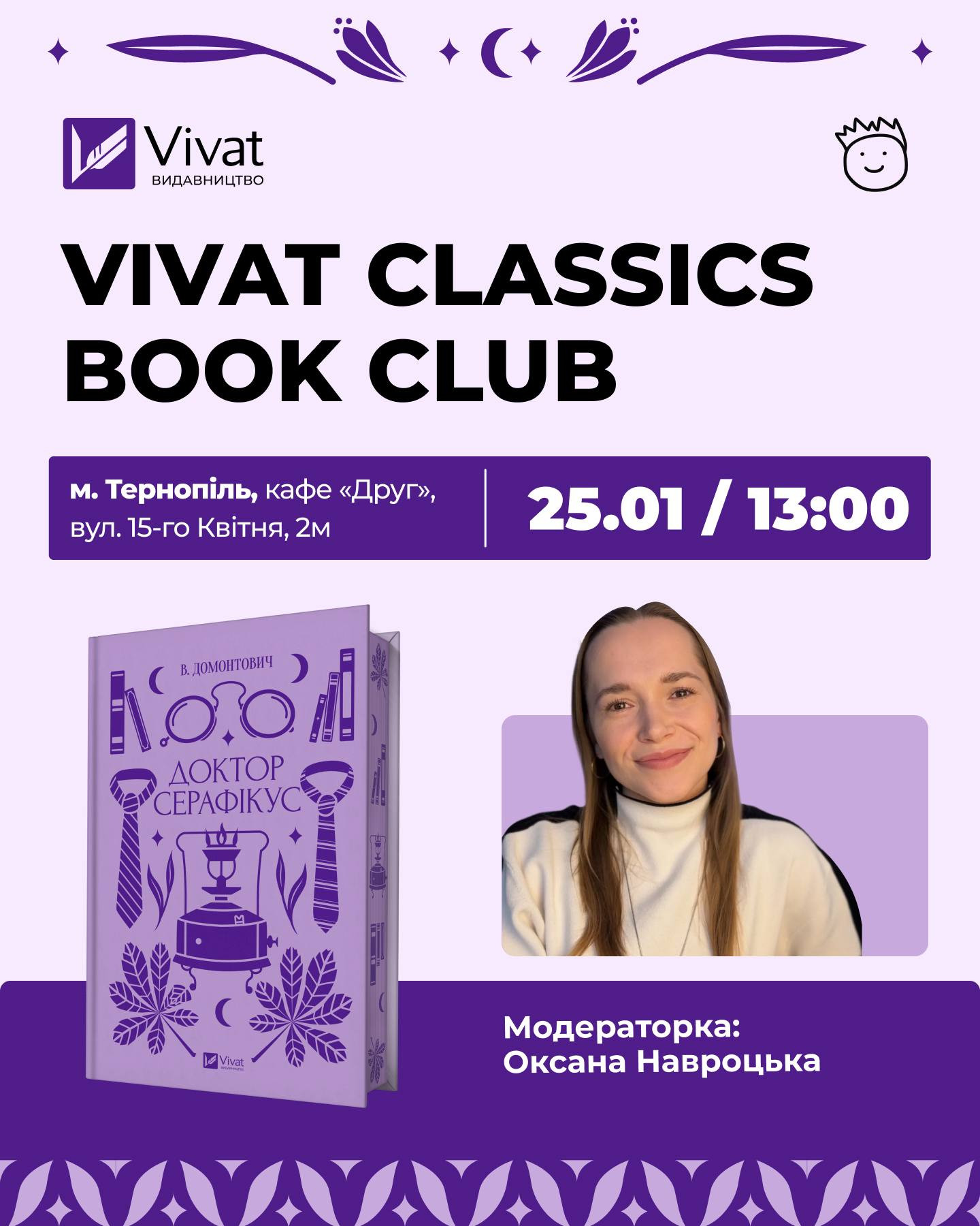 Vivat Classics Book Club. Обговорення книги "Доктор Серафікус" Віктора Петрова-Домонтовича у місті Тернопіль