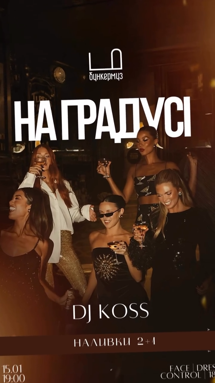 Запрошуємо на градусі — гарячу вечірку з DJ Koss, де музика піднімає настрій, а ритм не відпускає до останнього біту.