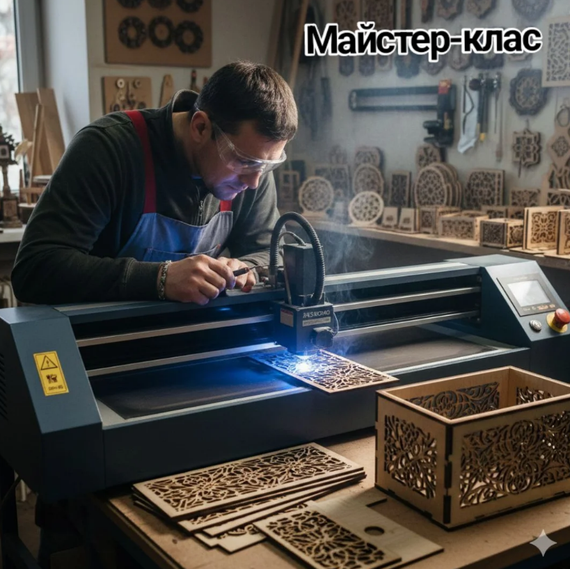 Практикуючий оператор розповість про принципи роботи верстата та продемонструє процес різання і гравіювання. Кожен учасник матиме змогу власноруч виготовити ексклюзивний крафтовий виріб - скриньку.
