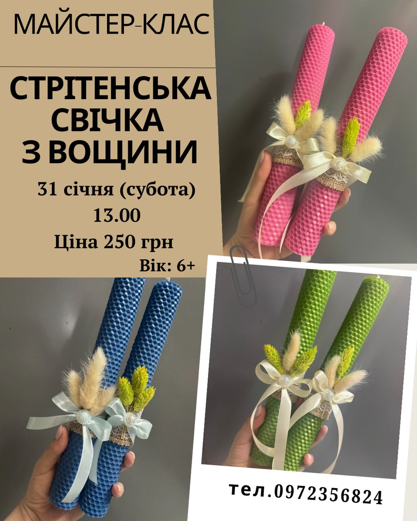 Запрошуємо діток на теплий та творчий майстер-клас, де кожна дитина власноруч створить свою стрітенську свічку.