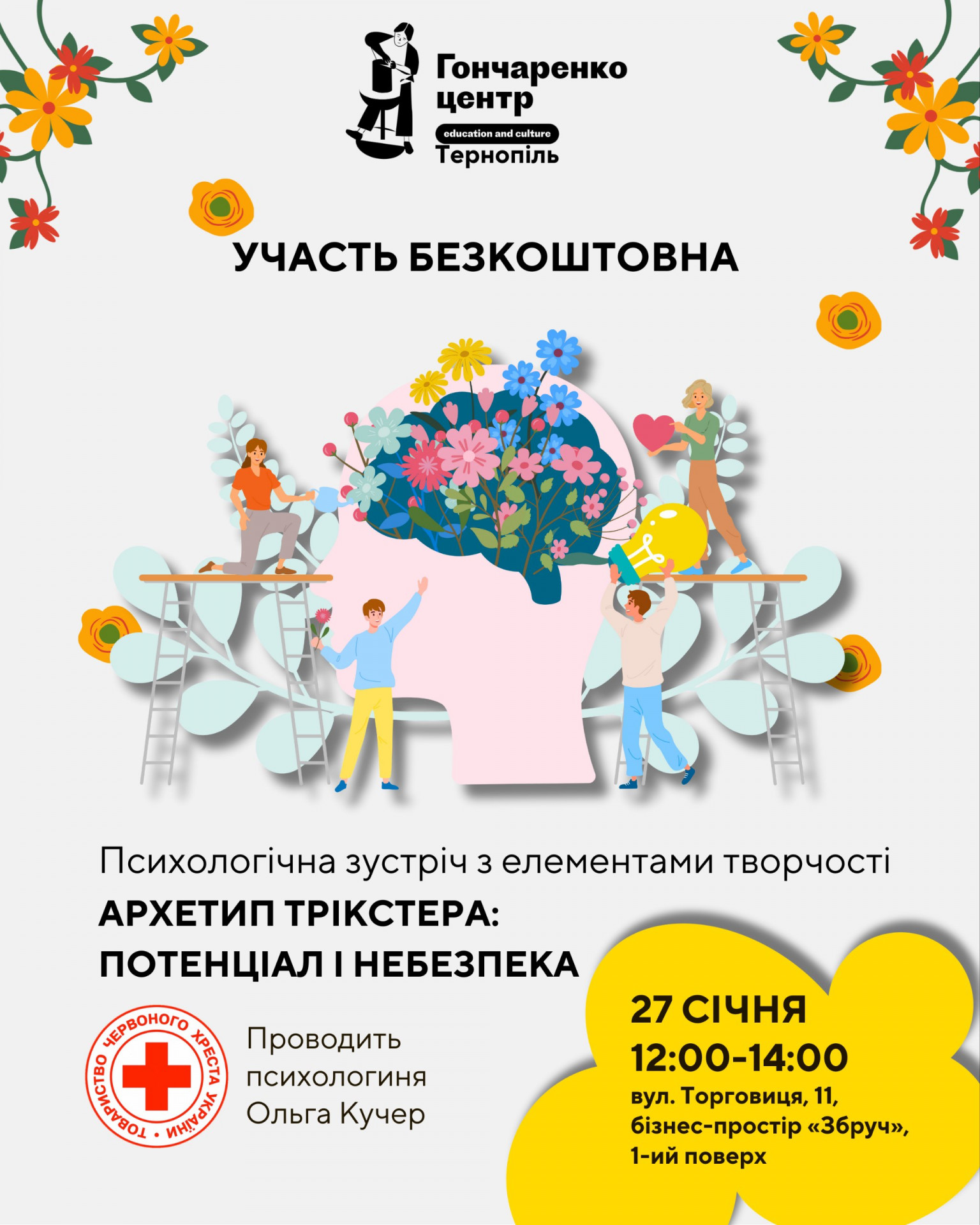 Психологічна зустріч з елементами творчості "Архетип трікстера: потенціал і небезпека" у місті Тернопіль