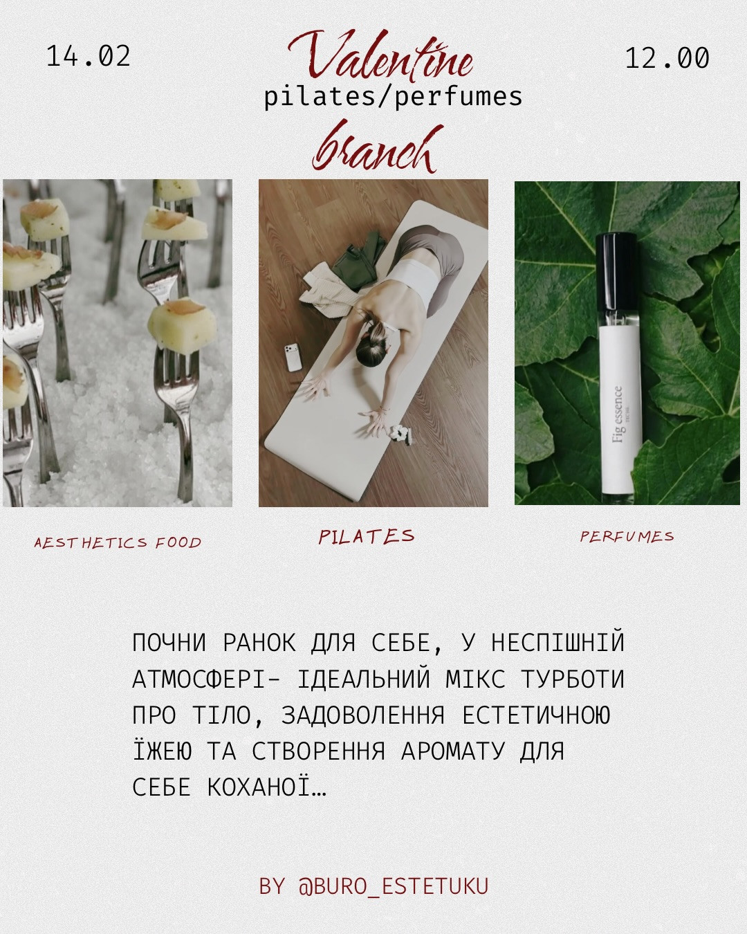 Цей бранч про тебе, про твоє тіло, задоволення, приємний неспішний початок дня, про смачну їжу, творчість та аромат настрою…