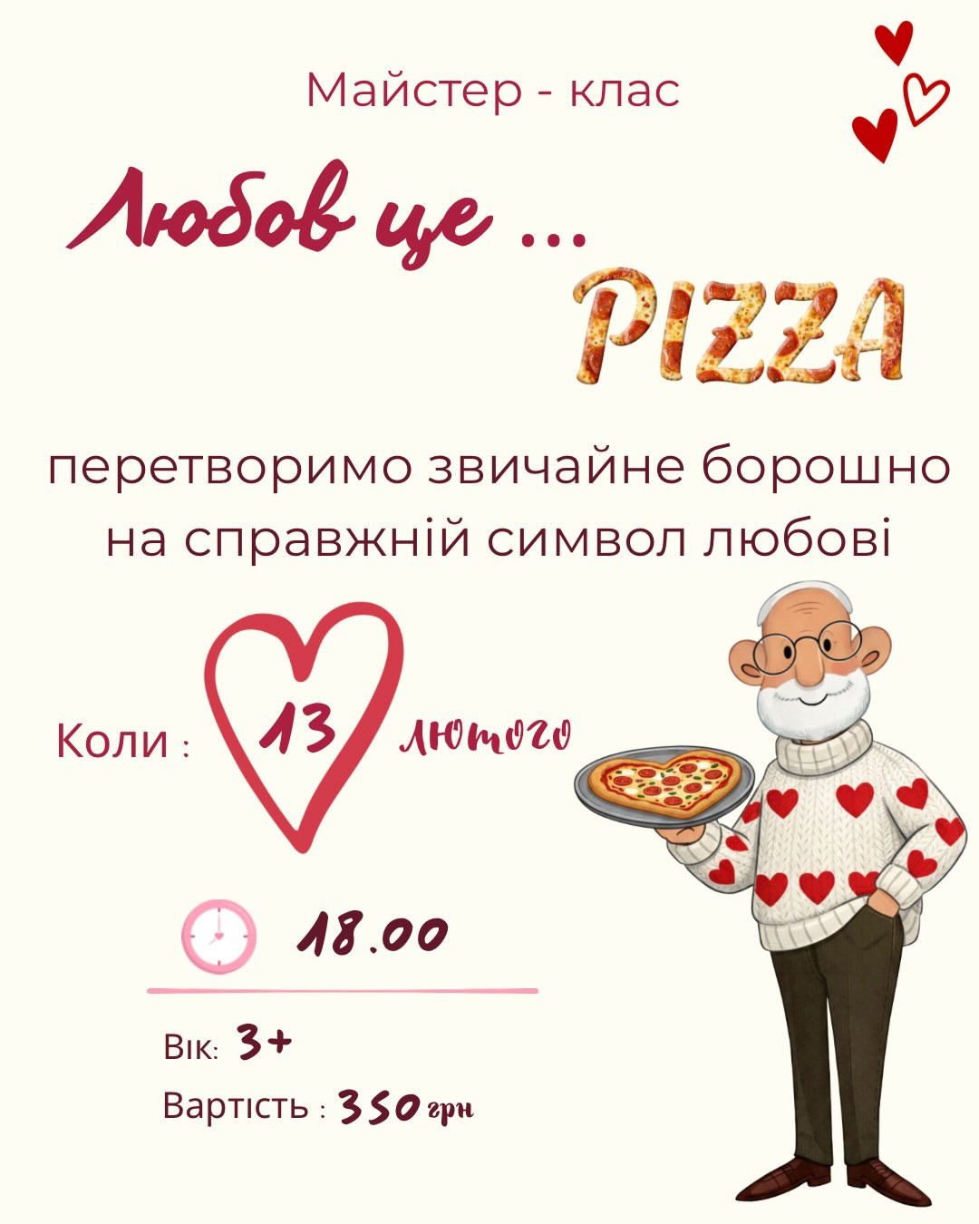 Запрошуємо на особлвиий та смачний майстер-клас для дітей "Любов це… Pizza".