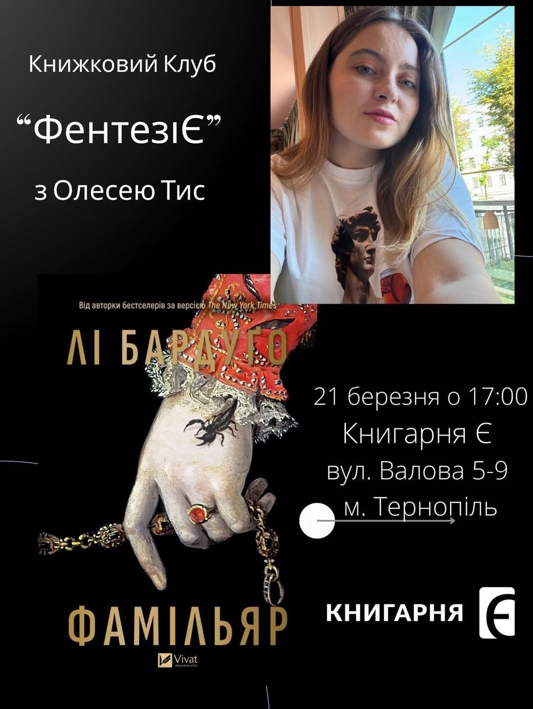 Книжковий клуб "ФентезіЄ". Обговорення книжки "Фамільяр" Лі Бардуго у місті Тернопіль