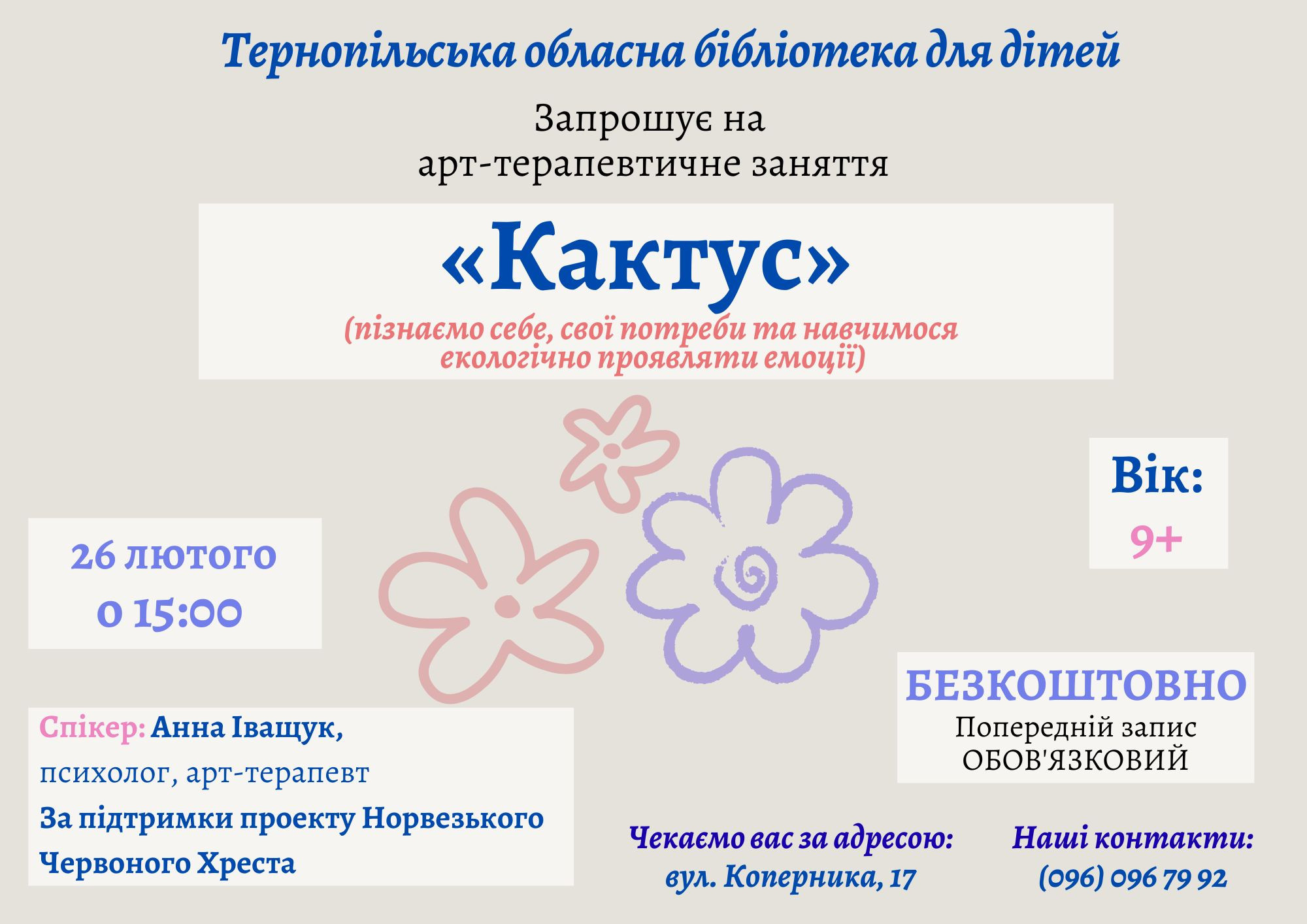 Запрошуємо на арт-терапевтичне заняття "Кактус" — простір, де через малювання ви зможете відчути, усвідомити та м'яко виразити свої емоції.