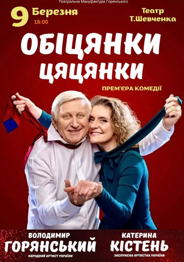 "Обіцянки цяцянки" - чудова комедія про шалену пристрасть та енергію подружньої пари, яка вирішила спробувати вільні відносини. Талановита, яскрава, неймовірно цікава гра про властивості та спокуси шлюбу.
