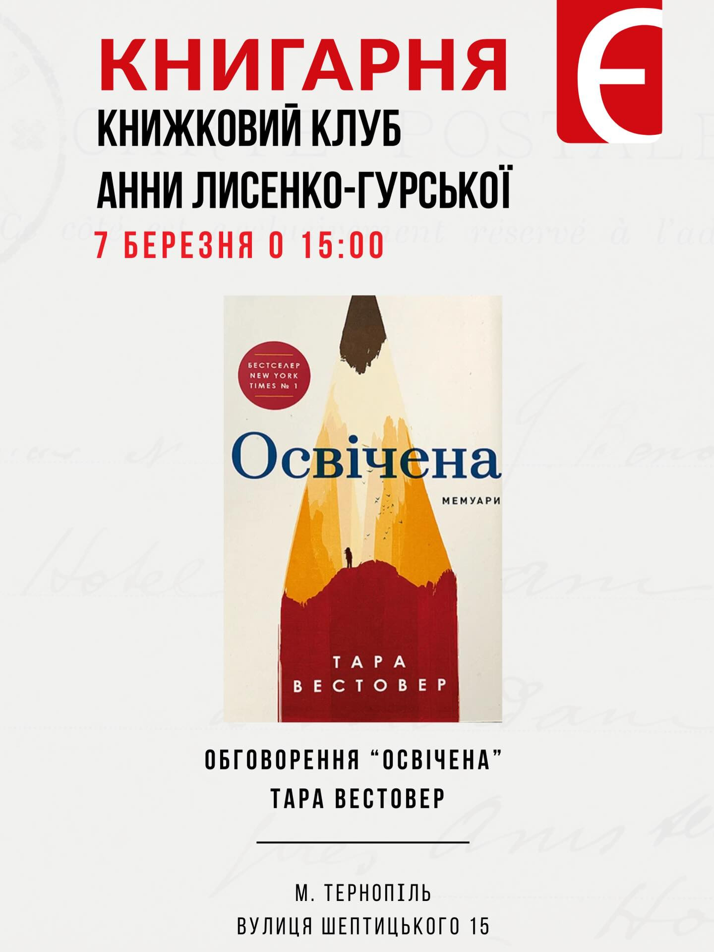 Книжковий клуб. Обговорення книги Тари Вестовер "Освічена" у місті Тернопіль