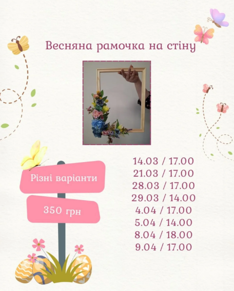Запрошуємо на майстер-клас "Весняна рамочка на стіну". Створіть власноруч стильний декоративний елемент, який наповнить простір весняним настроєм і стане гарною окрасою вашого інтер'єру.