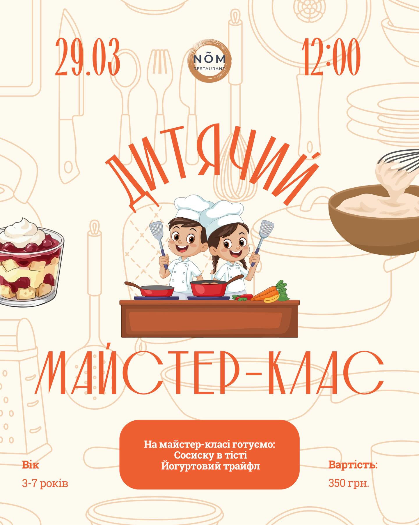 Запрошуємо на дитячий майстер-клас "Сосиска в тісті" та "Йогуртовий трайфл" — смачну й веселу кулінарну пригоду для малюків.