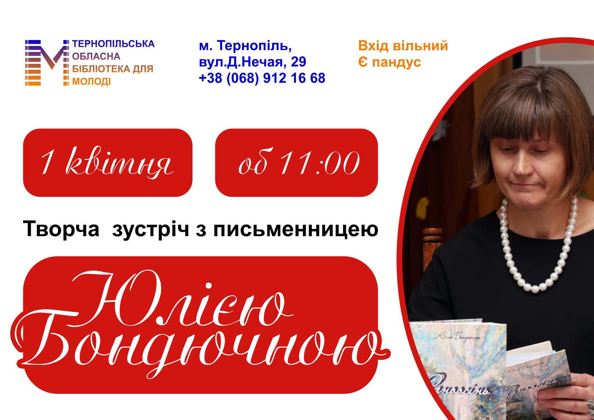 Творча зустріч з письменницею Юлією Бондючною у місті Тернопіль