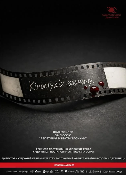 "Кіностудія Злочину" — комедія з елементами "чорного" гумору, яка досліджує межі між реальним життям та кіно, між дійсністю і фантазією. Гра відбувається не лише на сценічній площадці, а й з очікуваннями глядача.