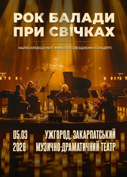 На концерті "РОК БАЛАДИ ПРИ СВІЧКАХ" ви знову зможете пережити найтепліші й найщасливіші миті свого життя. Улюблені мелодії з минулого нагадають вам про найцінніші моменти, а тепло й затишок свічок створять неповторну атмосферу.