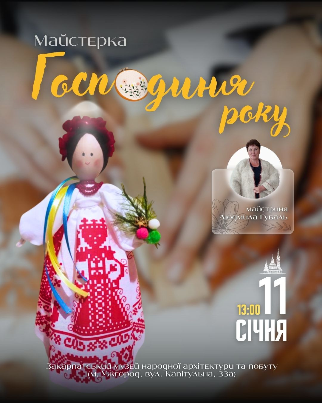 Запрошуємо на недільну майстерку до скансену! Цього разу навчатимемося виготовляти незвичайну ляльку з тканини — господиню року. Запрограмуємо її на те, щоб увесь рік добре вівся.