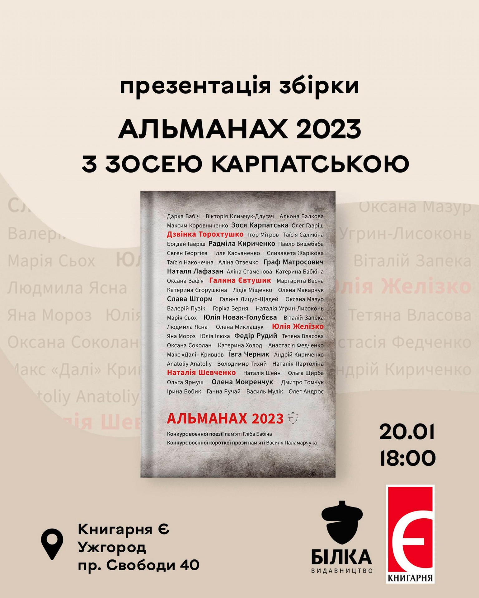 "Альманах 2023" — це книжка про наш досвід війни, збережений у словах. Тут зібрані поезія й коротка проза переможців і фіналістів конкурсів пам'яті Гліба Бабіча та Василя Паламарчука.