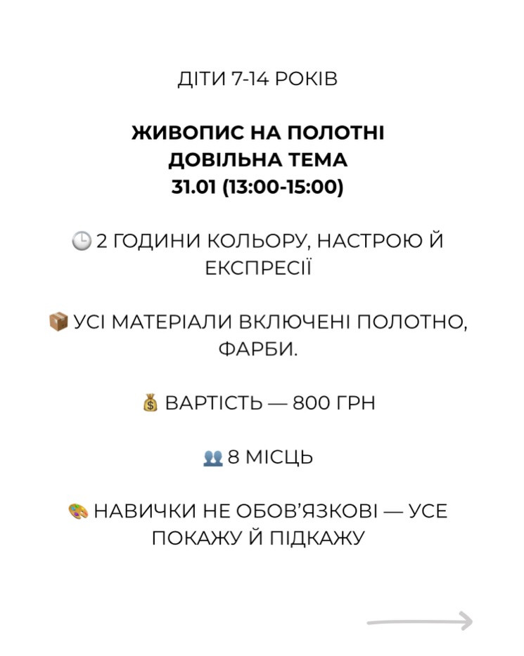 Запрошуємо на майстер-клас з живопису для дітей — творчу пригоду, де кожна ідея може ожити на полотні.