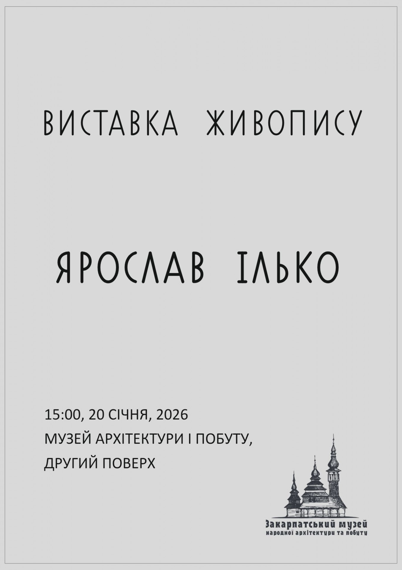 Запрошуємо на виставку живопису Ярослава Ілька — художника, для якого мистецтво є формою уважного проживання світу. Народжений і сформований в Ужгороді, він поєднує у своїх роботах локальну чутливість із академічною школою, пройденою в Ужгородському коледжі мистецтв та Львівській академії мистецтв. У творчому арсеналі митця кілька персональних виставок, що презентувалися в Івано-Франківську.