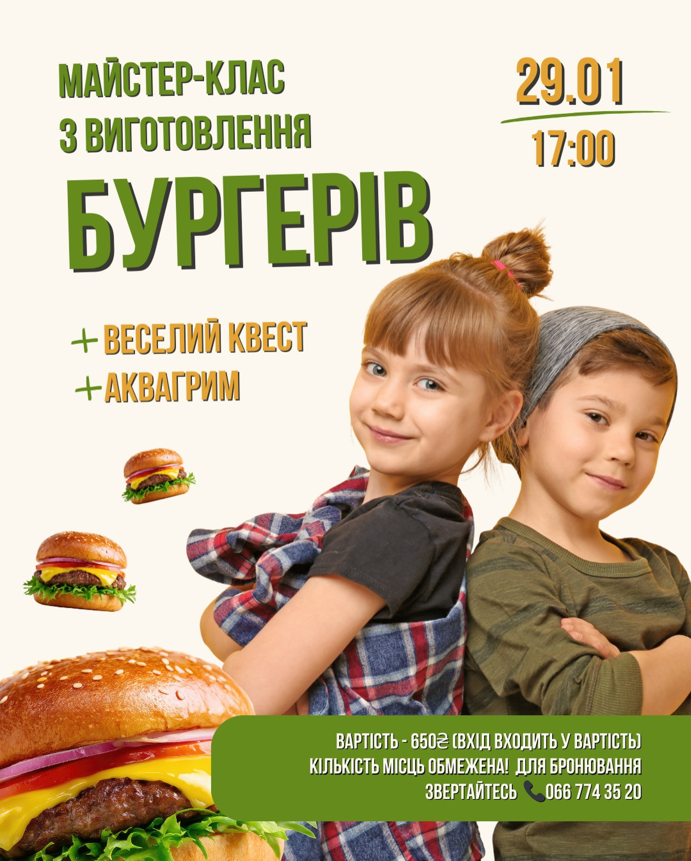 Запрошуємо вас на захопливий майстер-клас, де діти власноруч приготують свої ідеальні бургери.