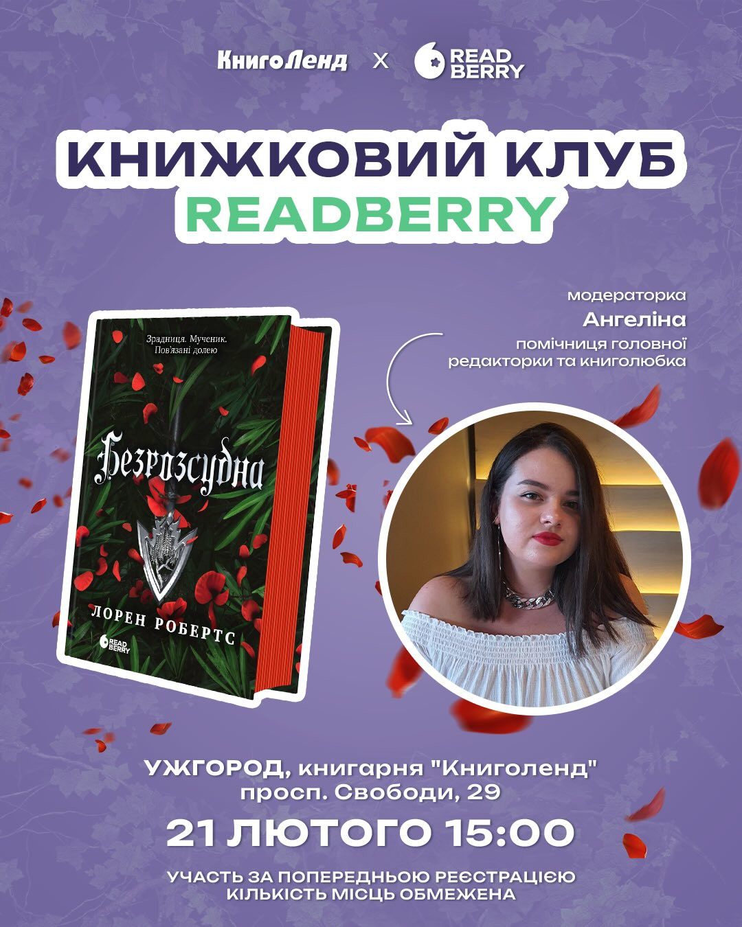 Книжковий Клуб Readberry. Обговорення книги "Безрозсудна" Лорен Робертс у місті Ужгород