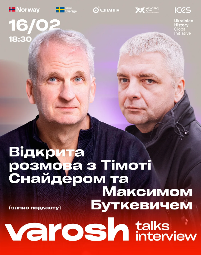 Varosh запрошує на відкриту розмову з Тімоті Снайдером та Максимом Буткевичем.