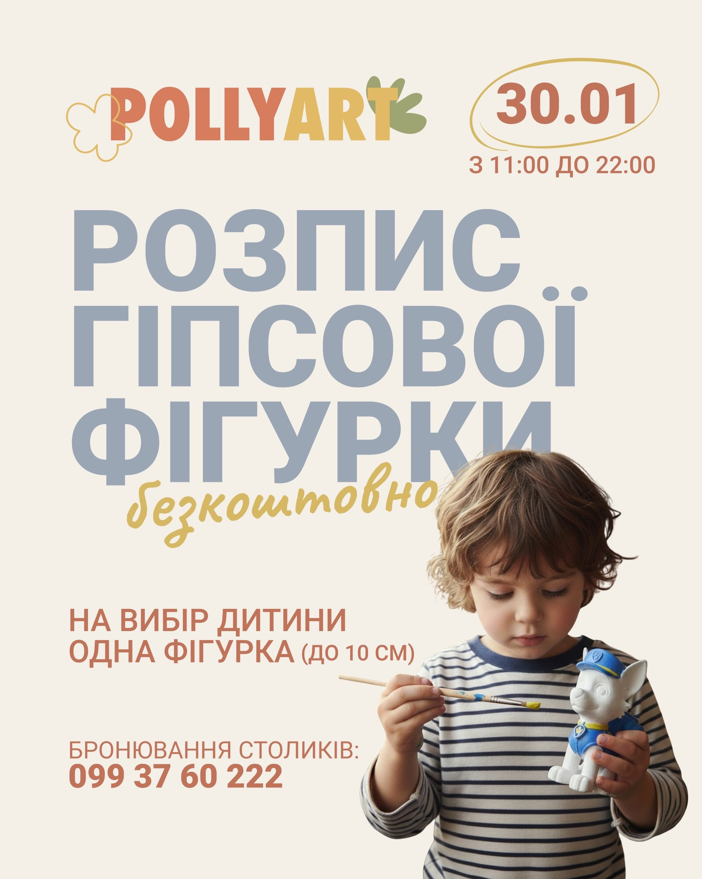 У цю п'ятницю протягом усього дня запрошуємо діток до нашої кімнати творчості POLLY ART на розпис гіпсових фігурок.