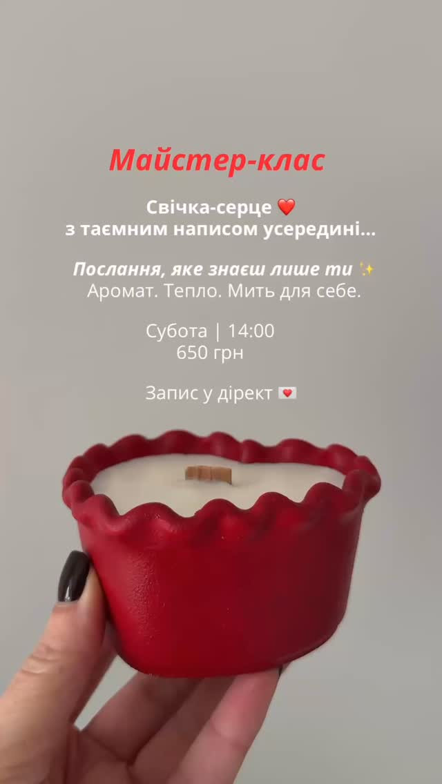 Запрошуємо на майстер-клас "Свічка-серце з таємним написом усередині" — особливу творчу подію з ноткою магії та тепла.
